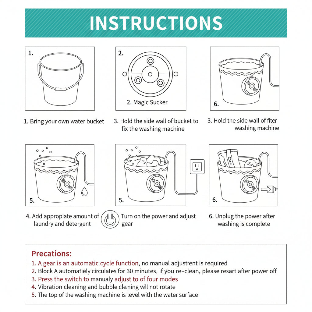 מכונת הכביסה הניידת הזו היא פתרון חכם לניקוי מהיר ועדין בכל מקום. מיועדת לעומסים קטנים, היא פועלת כמכונת כביסה מיני באמצעות ניקוי אולטרסוני המסייע להסרת לכלוך מבלי לפגוע בבד. אידיאלית כמכונת כביסה עם חיבור USB לנסיעות, חדרי פנימייה, קמפינג, שימוש ברכב נופש וצרכים יומיומיים, היא מתאימה בקלות לדליים או לכדים וחוסכת זמן, מים ואנרגיה.