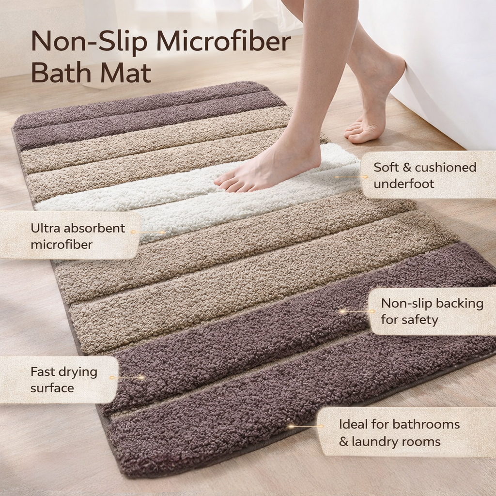Bucurați-vă de o baie mai curată și mai sigură cu acest covoraș de baie conceput pentru confort zilnic. Confecționat din microfibră moale, acest covoraș de baie absoarbe rapid apa pentru a ajuta la menținerea podelelor uscate după dușuri sau băi. Spatele covorașului antiderapant reduce alunecarea, iar suprafața pufoasă oferă o senzație plăcută sub picioare. Ușor de întreținut și elegant, acest covoraș din microfibră este ideal pentru băi, spălătorii și dormitoare.