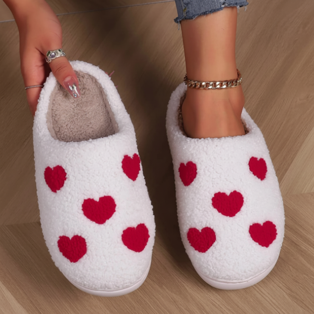 Papuci de casă pentru femei, călduroși, cu imprimeu inimă, spumă cu memorie