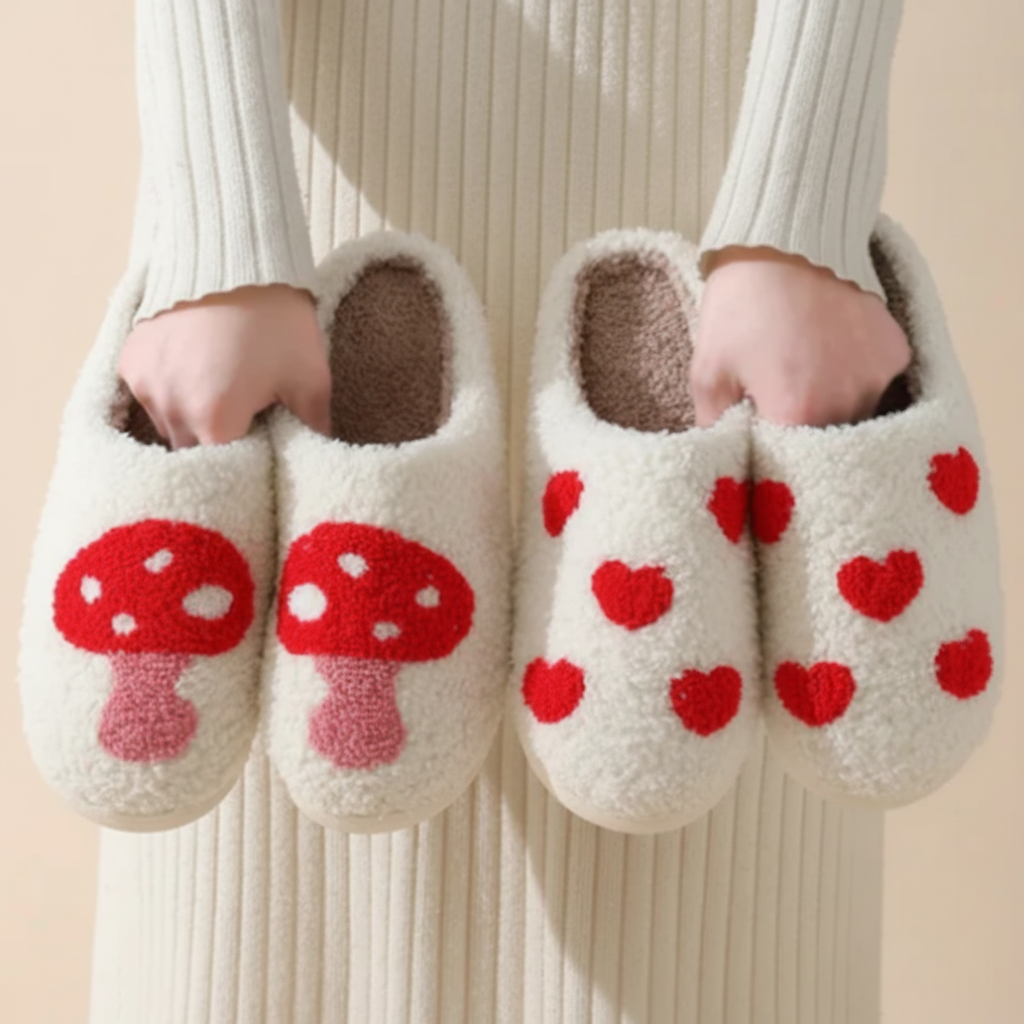 Papucii cu spumă cu memorie sunt creați pentru a-ți menține picioarele fericite toată ziua, cu o căptușeală moale și o potrivire strânsă. Acești papuci de casă pentru femei au modele drăguțe cu inimioare și ciuperci pe o suprafață pufoasă care se simte caldă și blândă. Căptușeala respirabilă a papucilor ajută la reducerea transpirației, iar talpa pentru interior și exterior îți permite să te plimbi în siguranță prin casă sau să ieși afară cu ușurință.